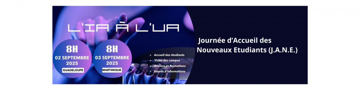 - En Guadeloupe le mardi 2 septembre : Dès 8h, les étudiants seront accueillis dans leurs composantes respectives, sur le campus de Fouillole et le campus de Camp Jacob. Les JANE de l’INSPÉ Guadeloupe se tiendront les mardi 2 et mercredi 3 septembre, selon les filières concernées, sur le campus du Morne Ferret.
